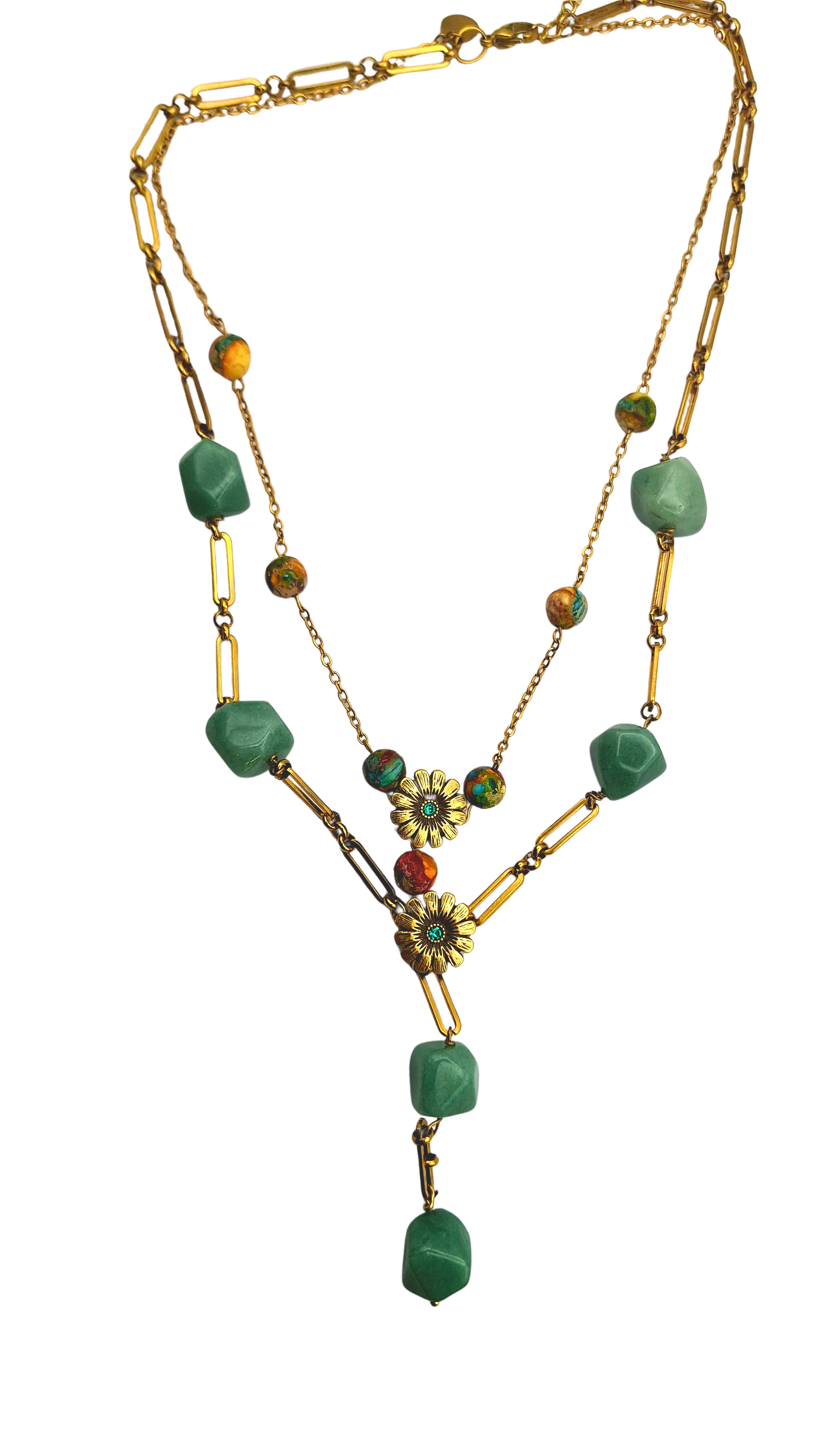 Made with sodalite,pearls and intricate pvd gold chain for durability